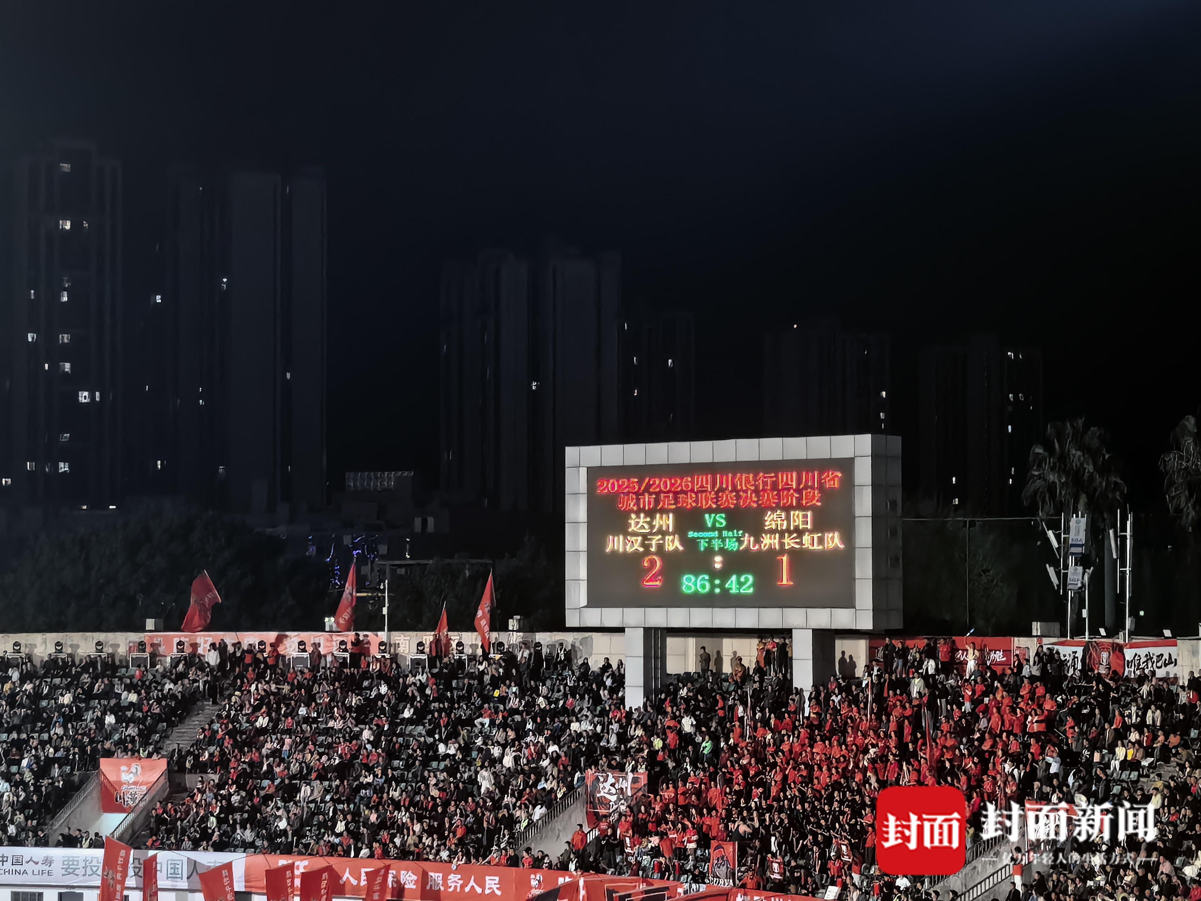 第84分钟,达州队再次通过定位球,80号队员冯禹豪头球破门,将比分反超。比赛终末阶段,绵阳队大举压上,屡造杀机,但达州队凭借轻薄的驻守,将绵阳队的一次次紧迫化险为夷,在一次驻守反击中,差点诈欺单刀契机再进一球杀死比赛。
