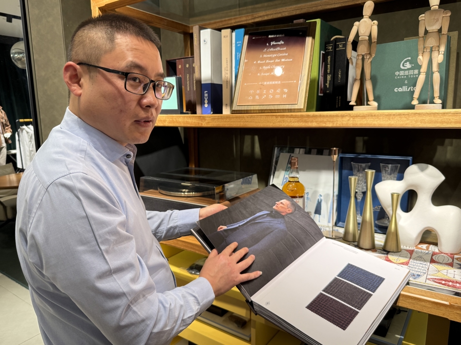 当作上海原土品牌,于建军对自家的工艺十分自信:“咱们的打版师即是从杰尼亚引入的高端东谈主才,来宾不错解放经受杰尼亚、皮亚琴察、切瑞蒂1881等高端面料,定制价钱从5000元到10万元不等,定制周期在25个责任日傍边。”他清楚,前段时候一位卡塔尔王室成员来沪,连气儿定制了3件衬衫、一套西服,他上门去量文体衣,客岁12月完成定制后由翻译官带回卡塔尔,对方反映“超等快意”,暗意还会来上海定制。