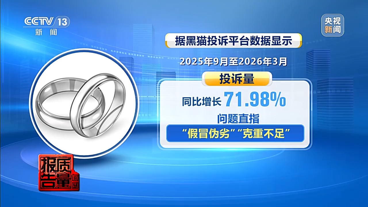 胡女士的遇到并非个例。据黑猫投诉平台数据显现,自2025年3月白银价钱飙升以来,相干投诉激增。仅2025年9月至2026年3月半年间,投诉量同比大幅增长71.98%,问题直指“假冒伪劣”与“克重不及”。