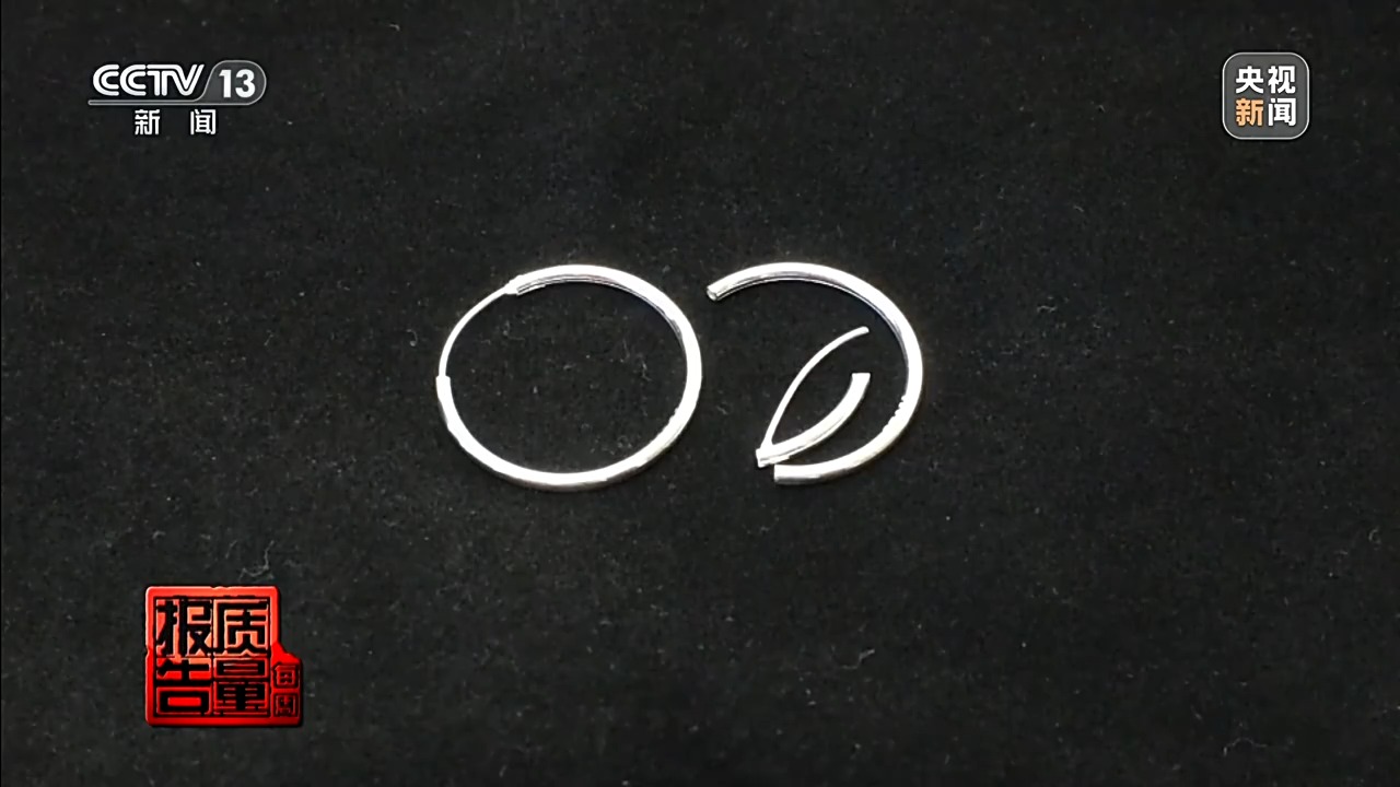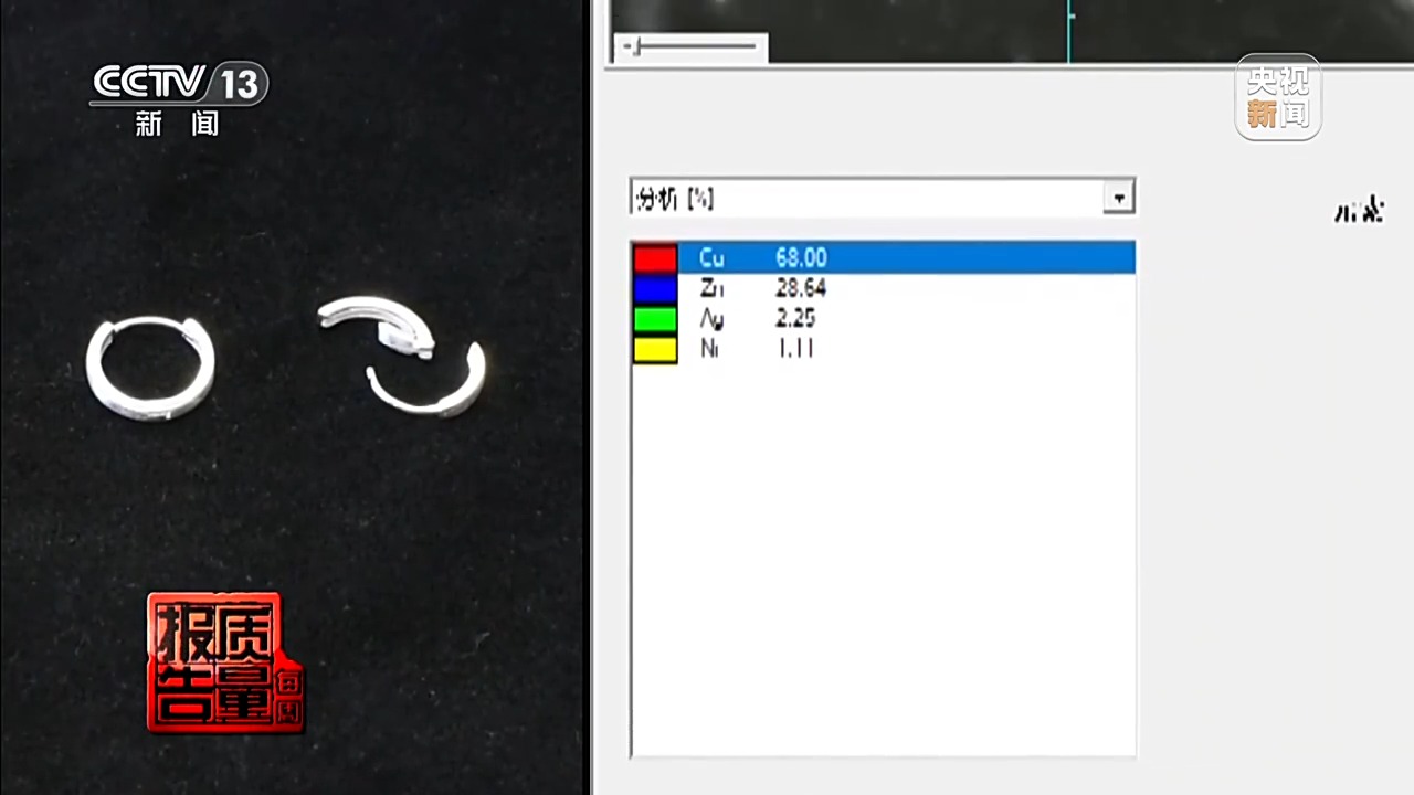 “足银饰品999”直播间宣称“除了银子莫得其他杂质”的耳饰,检测发现主体为铜锌合金,实测银含量仅为0.67%;