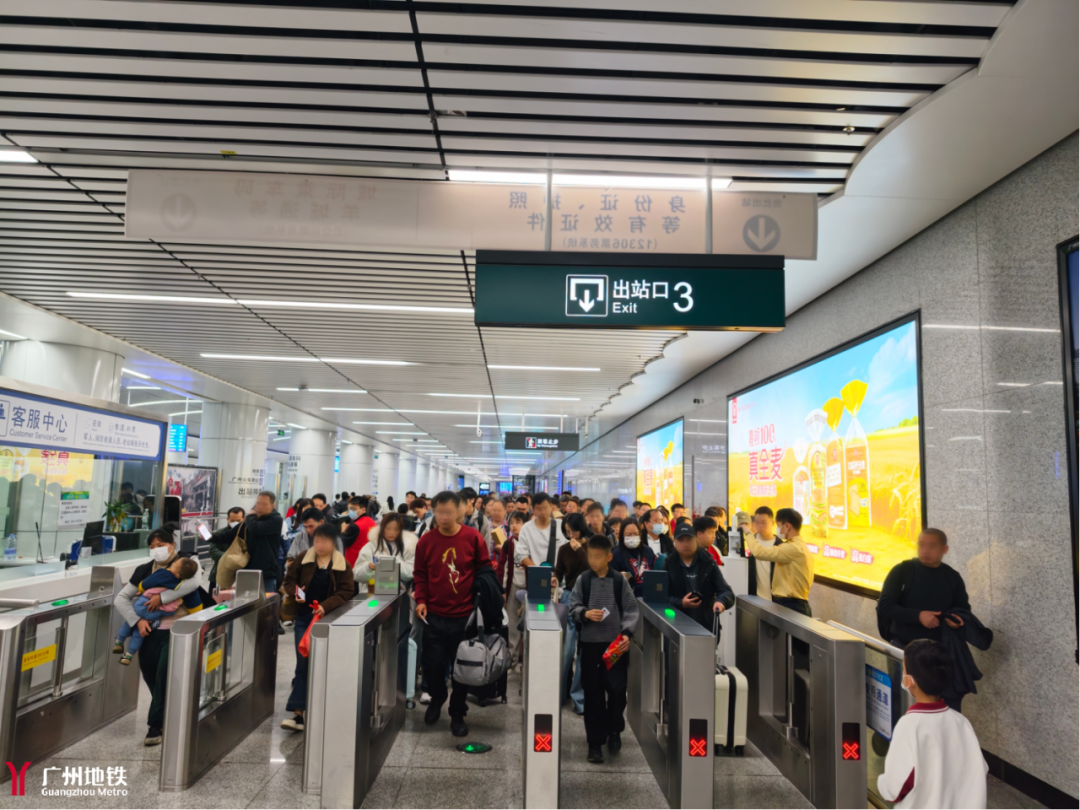 广州地铁温馨辅导:春运技艺车站客流较大,请广阔游客合生机象行程,预留弥漫的搭车时候。为确保列车运转安全,城际动车组均设有载客容量适度,如遇车厢超员报警,使命主谈主员将实时对游客进行疏散指引。搭车时请有序候车、先下后上,致密站台与车门罅隙,切勿抢上抢下、强行冲门。