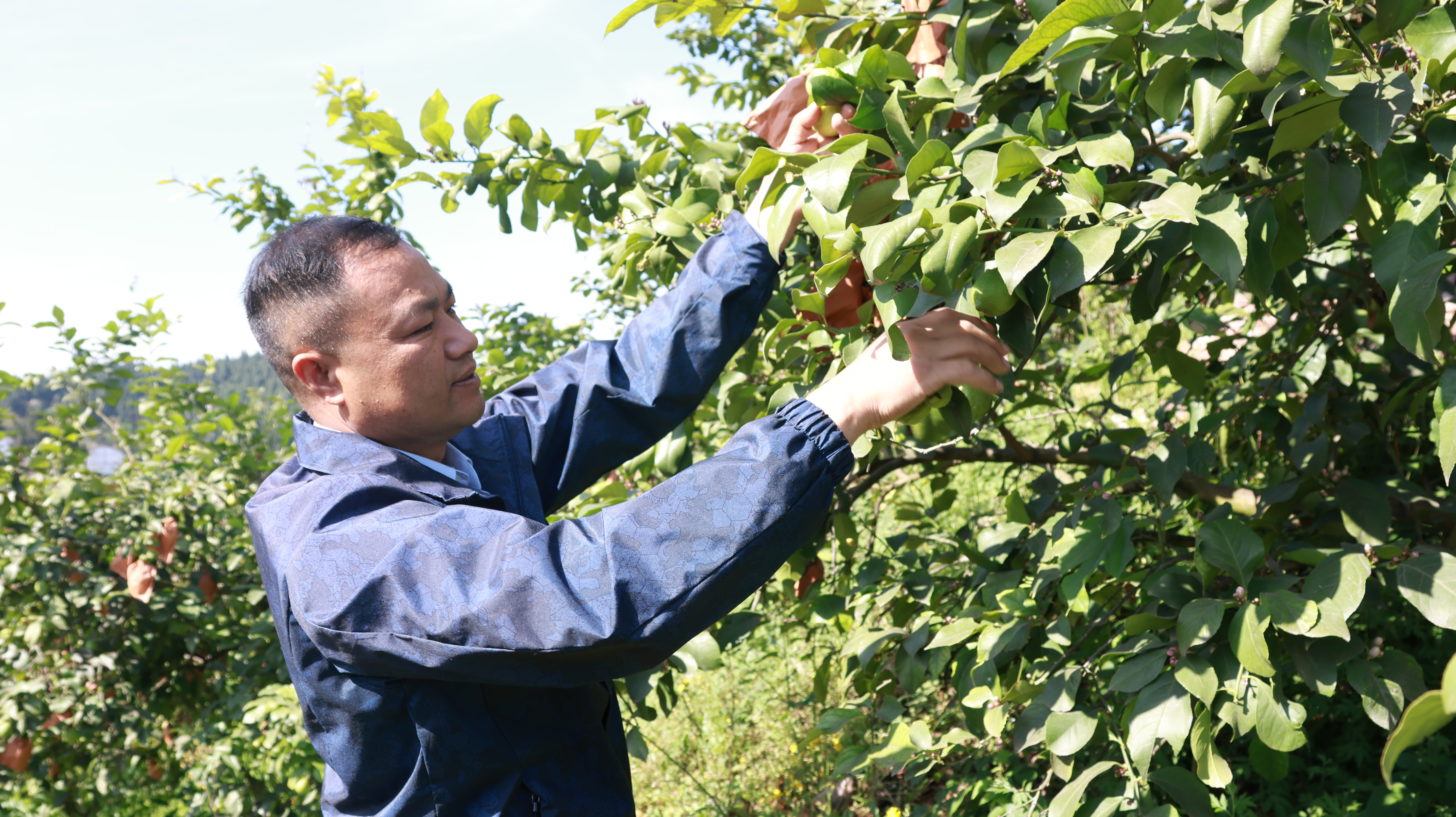 遂宁市安堵区东禅镇马家桥村党支部布告冷祯东正在给柠檬疏果。安堵区委宣传部供图